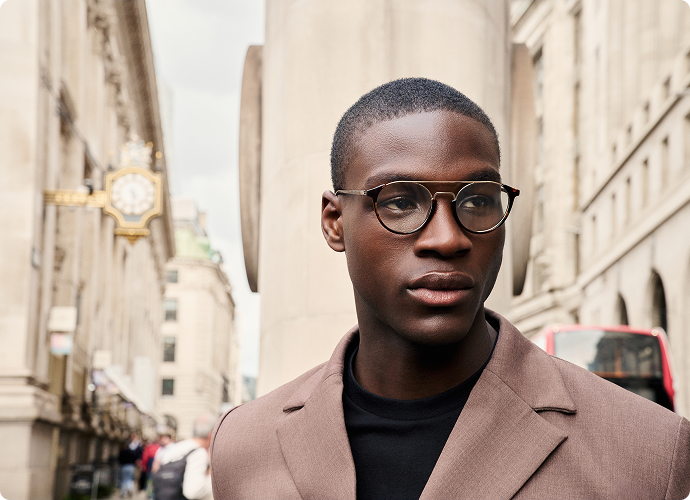 The designs fuse classic British tailoring with urban edge: tortoiseshell acetate nods to Soho cafés and heritage style, while sleek metallic details evoke the glint of city lights reflected on the Thames. Each piece balances movement and structure, echoing the duality of London’s identity — timeless yet electric, grounded yet always evolving.
